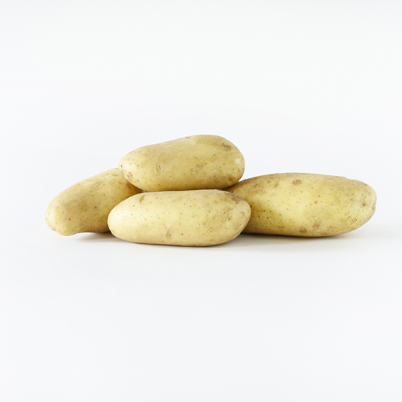 Long oval shape with smooth, light yellow skin and creamy-colored flesh.